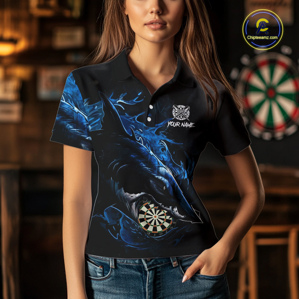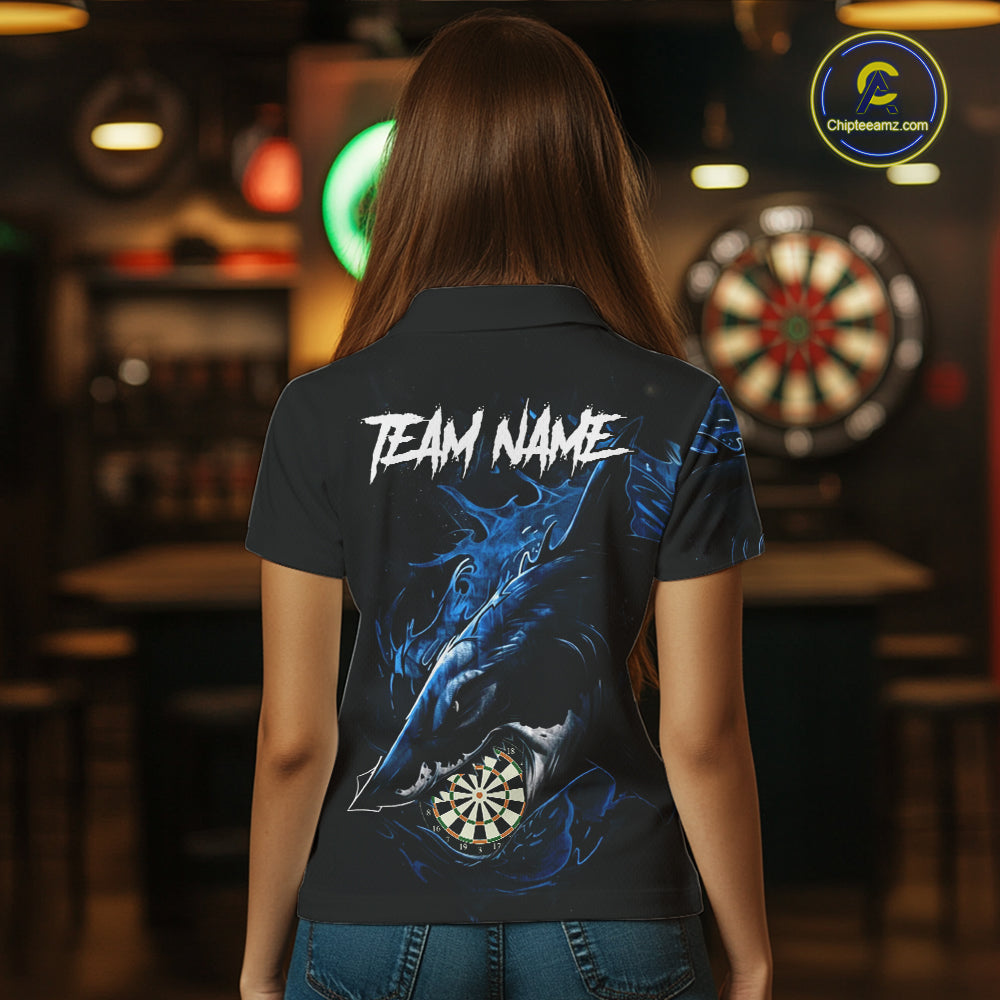 Personalized Blue Horror Shark Women Darts Polo League Shirts Funny Grunge Dart Jerseys NYN2218