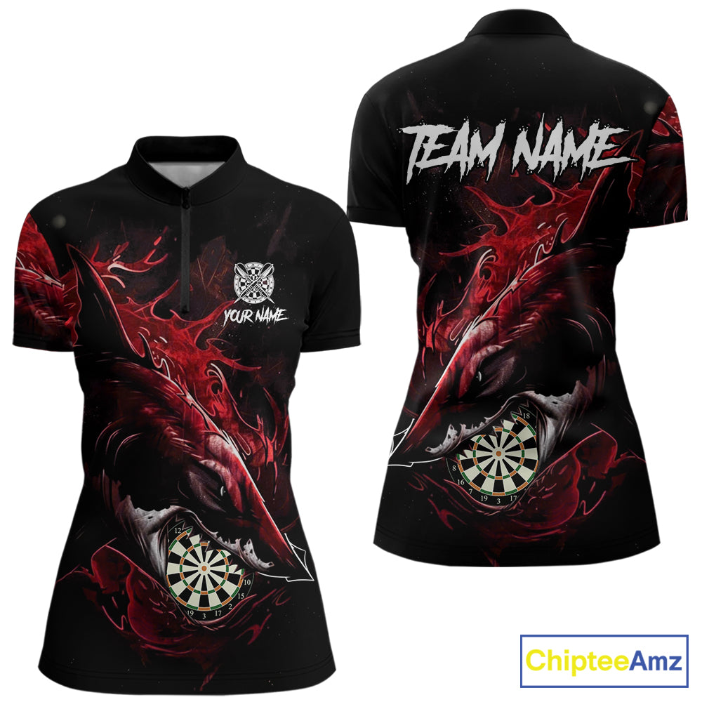 Personalized Red Horror Shark Women Darts Polo League Shirts Funny Grunge Dart Jerseys NYN2219