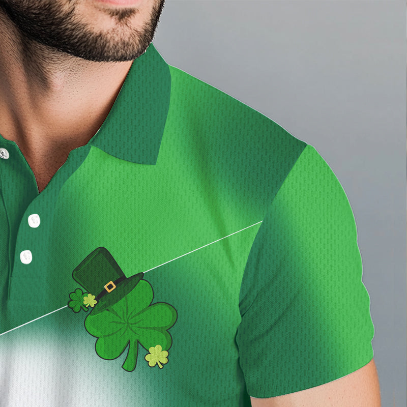 Mens golf polo shirt custom name white and green shamrock St Patrick day golf shirts, golfing gifts NQS9676