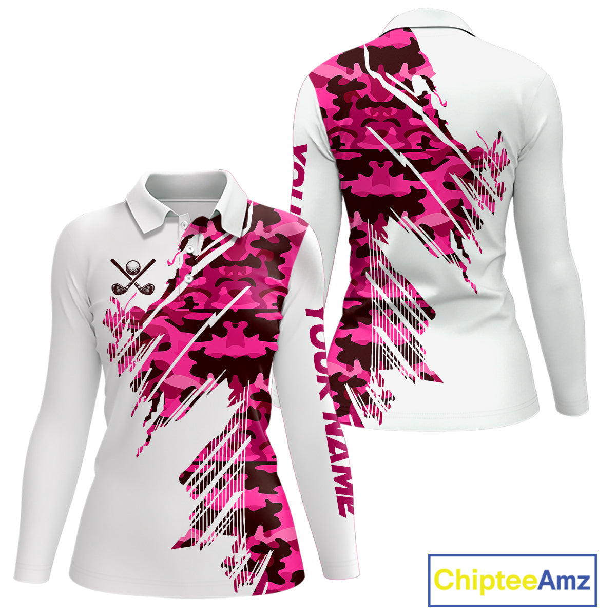 Personalized Women golf polo shirts custom white and pink camo ladies golf apparel, golfing gifts NQS10335