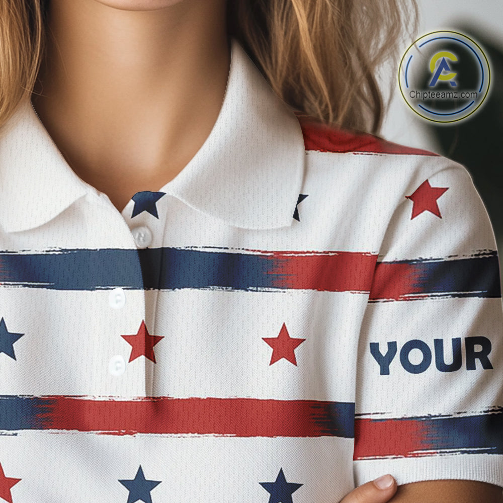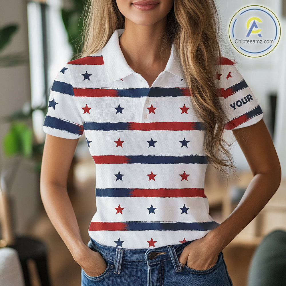 Red, White and Blue stars pattern Women golf polo shirts Custom patriotic ladies golf attire NQS9980