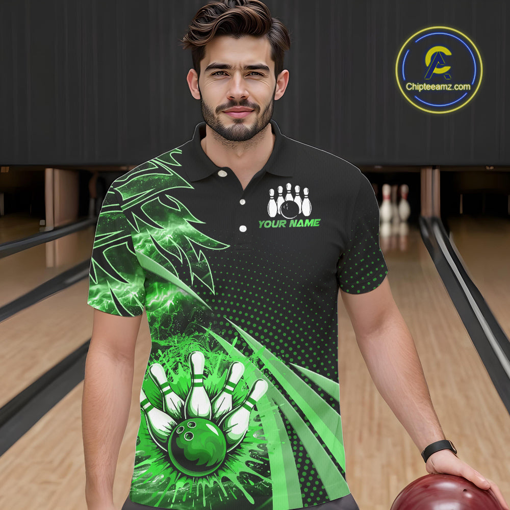 Black and Green Bowling Polo, Quarter zip shirts For Men Custom Team Bowling Jersey, Gift For Bowlers NQS10787