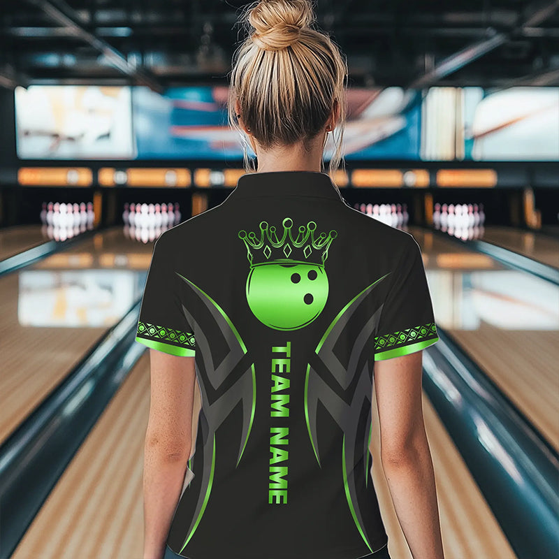 Black and Green crown Bowling ball Polo, Quarter Zip Shirts for Women Custom Bowling Team jerseys NQS9502