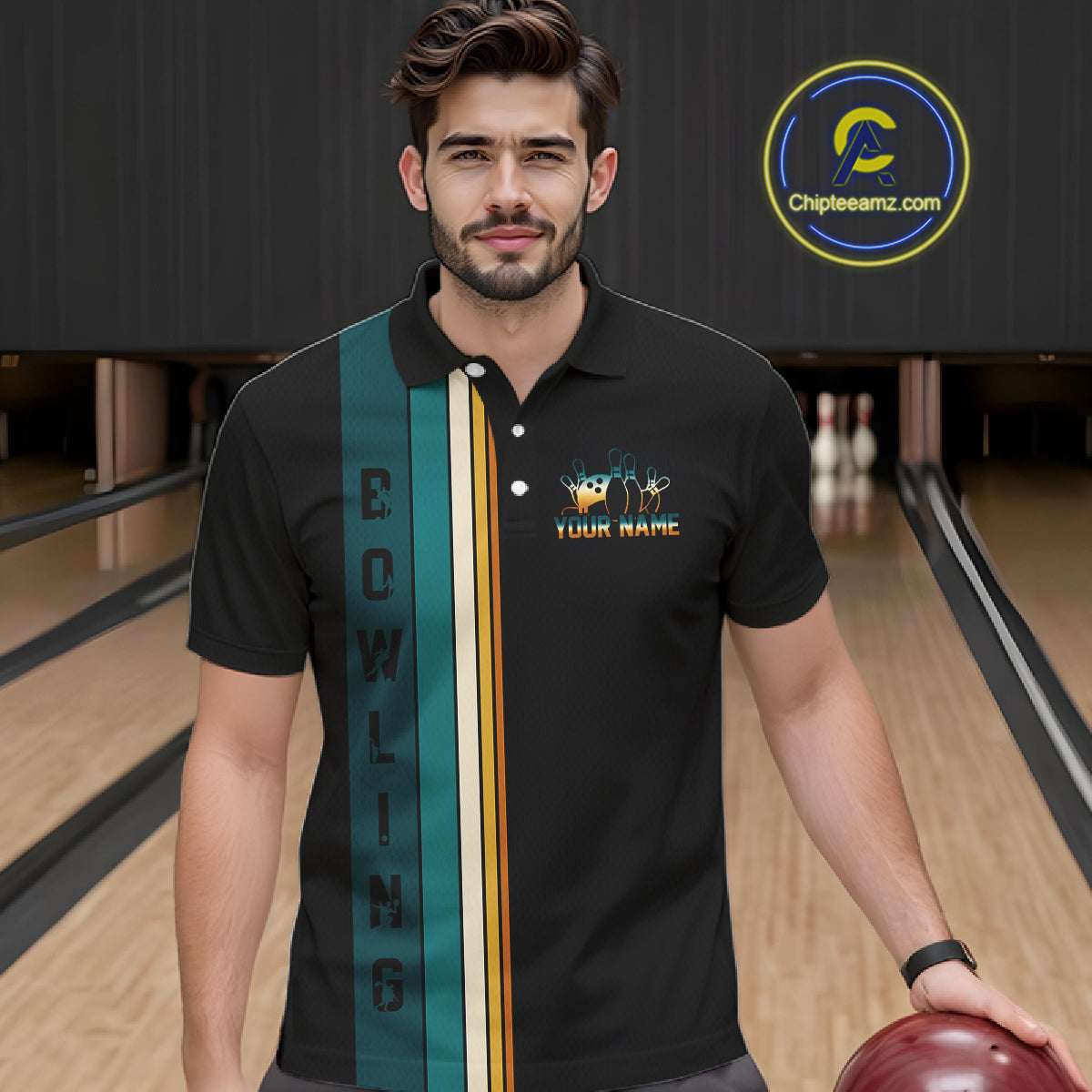 Black and Green Retro Bowling Polo, Quarter Zip Shirts for Men Custom Team Bowling League Jerseys NQS10744