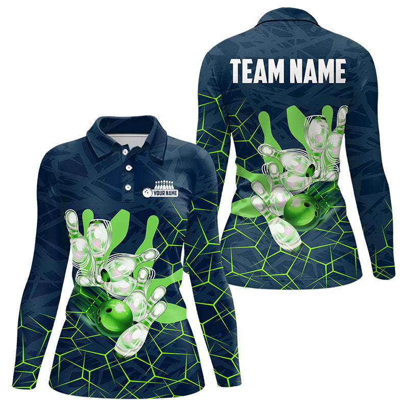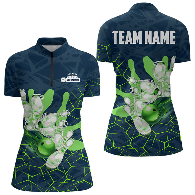 Blue and Green Camo Bowling Polo, 1/4 Zip Shirts for Women Custom Team Ladies Bowling jerseys NQS9304