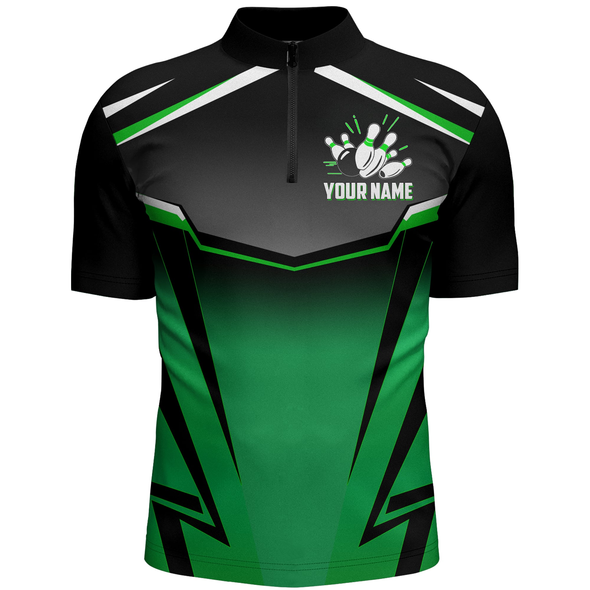 Custom Bowling Shirt for Men Kingpins Green Quarter-Zip Bowling Shirt with Name, Men Bowlers Jersey NBZ182