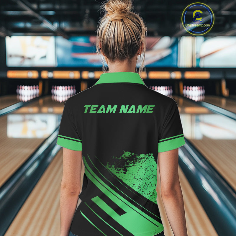 Custom Black And Green Bowling Team Polo, Quarter-Zip Shirts For Women, Personalized Bowling Jerseys NQS10540