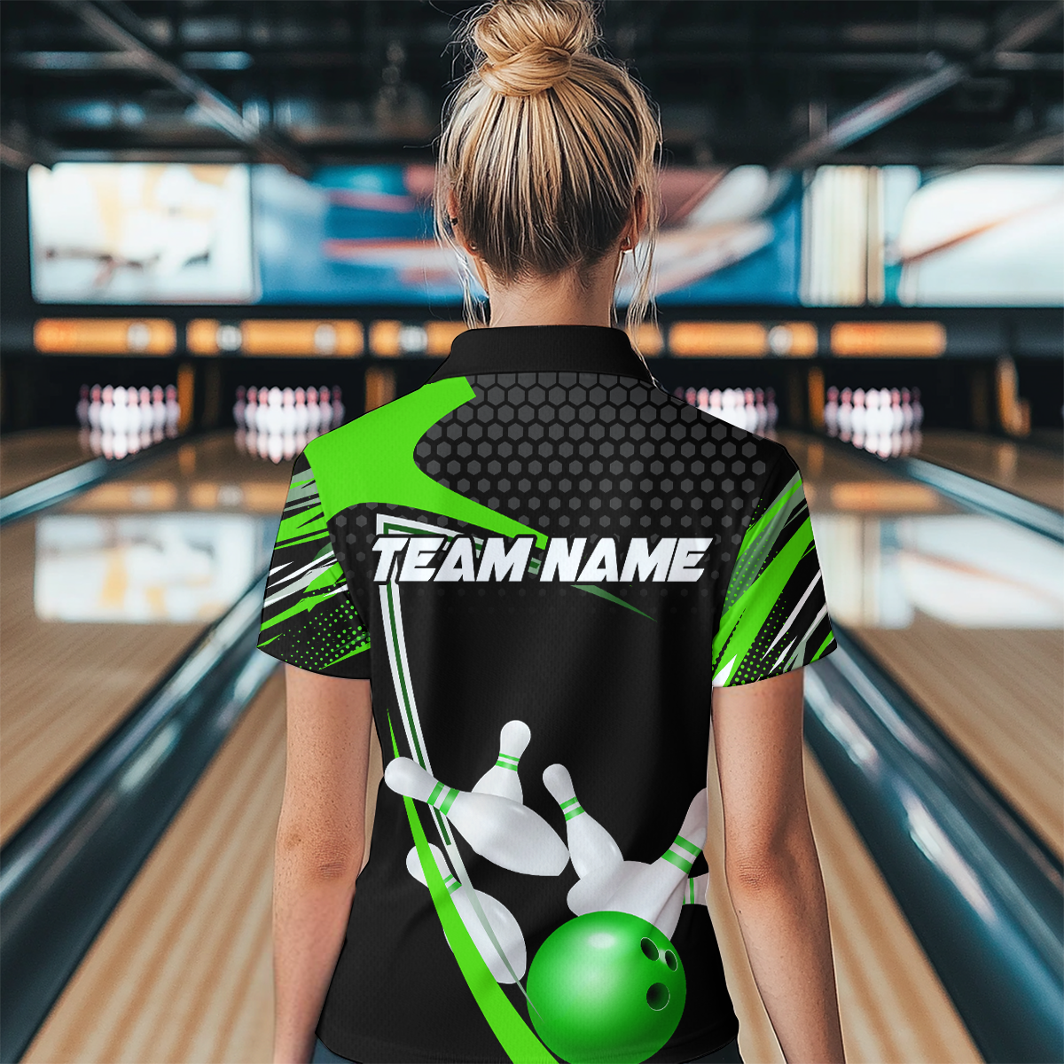 Green Bowling Shirts for Men and Women Bowling Shirt Team Bowling Polo & 1/4 Zip Shirt MBL36