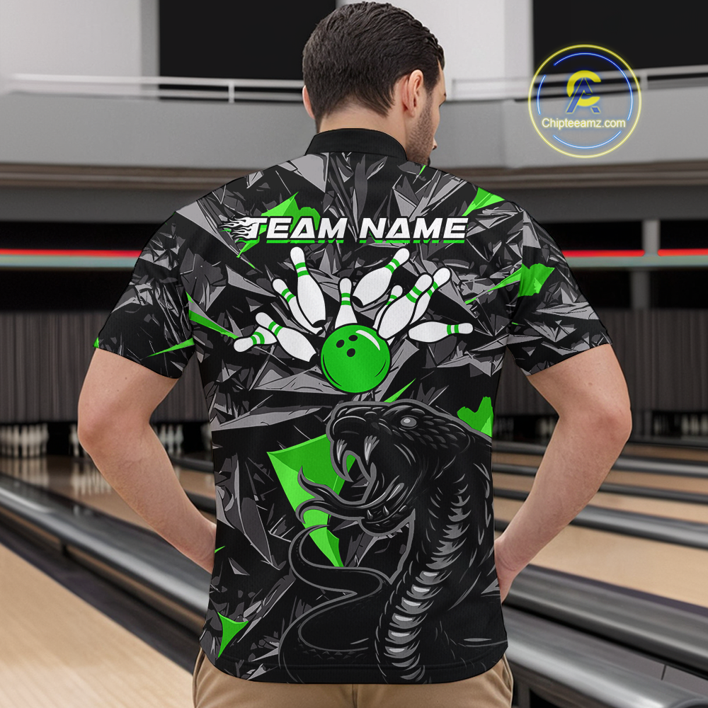 Custom Green Cobra Snake Bowling Jersey for Men Bowling Team Shirts Bowling Uniform Polo & 1/4 Zip HNT137