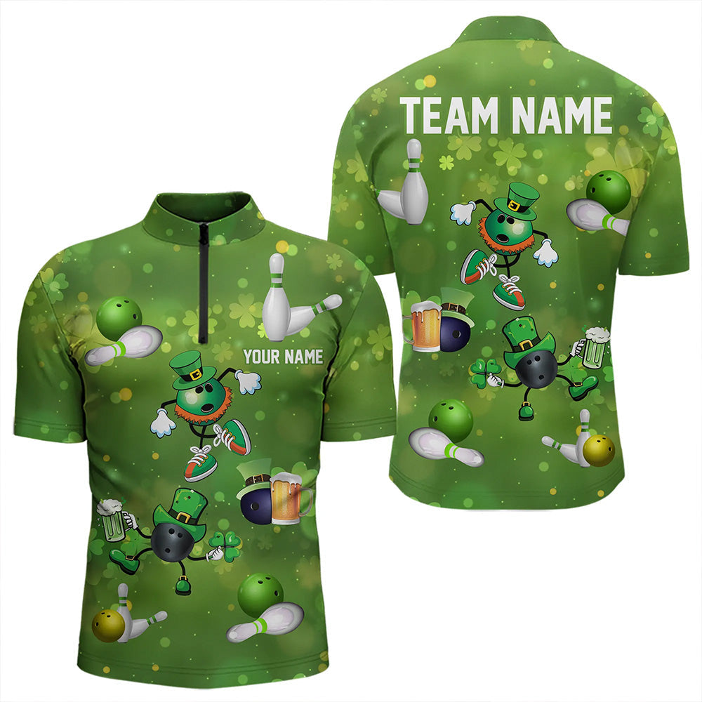 Funny Green shamrock Lucky Bowling Shirts for Men Custom St Patrick Day Team bowling jerseys NQS9325