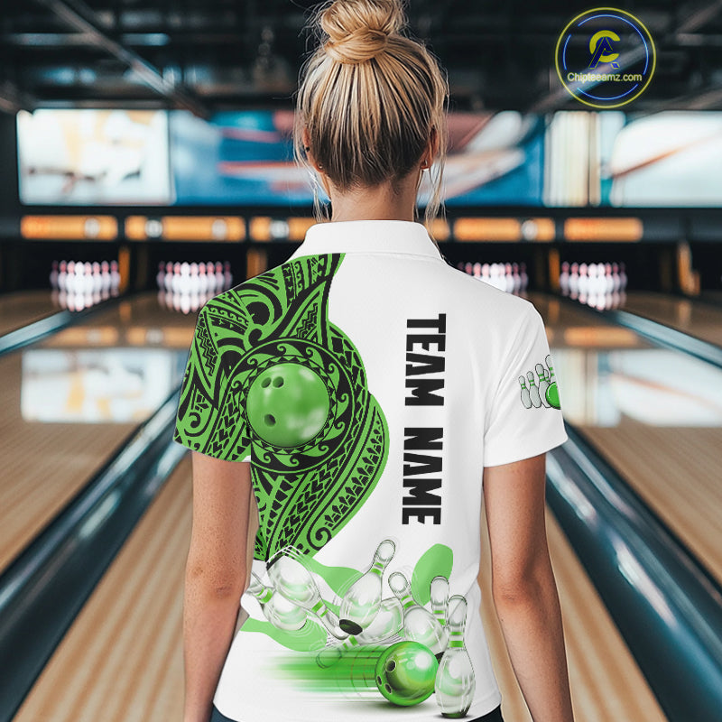 Green and White Tribal pattern Women Bowling Shirts Custom Bowling outfit ladies Team bowling jersey NQS9812