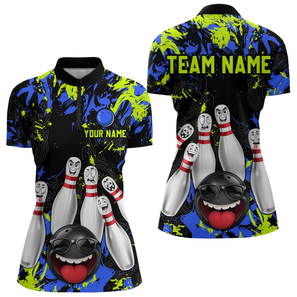 Green Blue Funny Bowling Team Shirt for Women Bowling League Jersey Polo & 1/4 Zip Bowler Outfit QZT781
