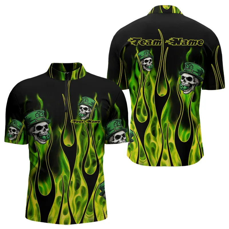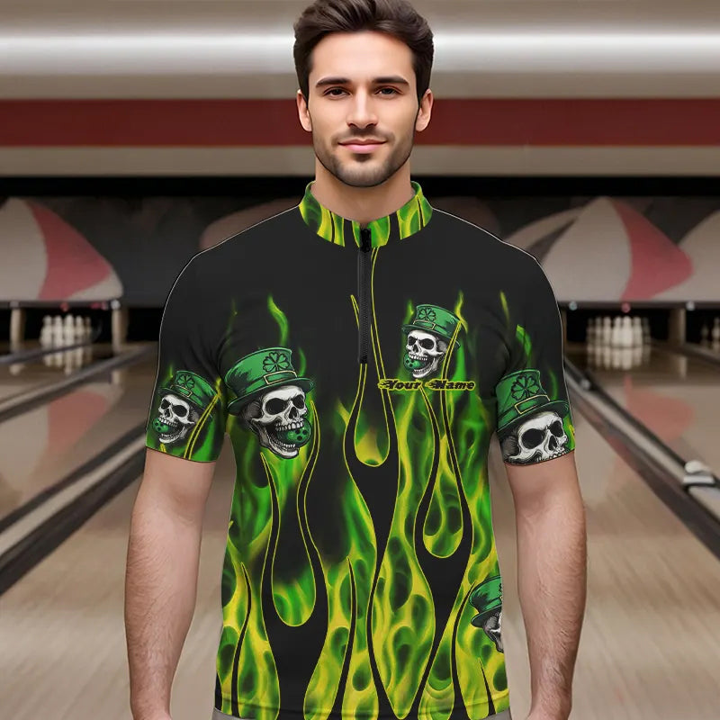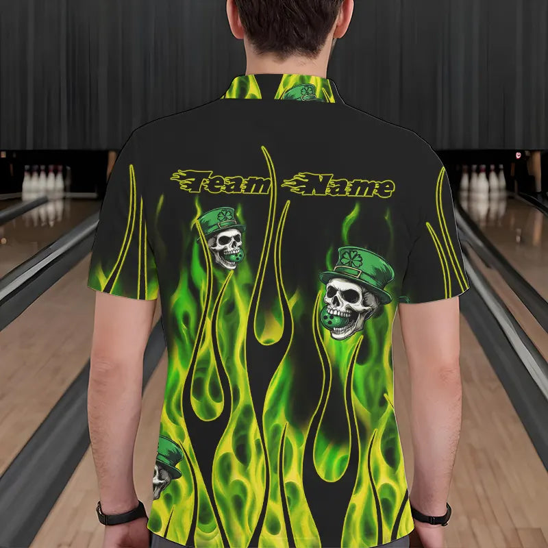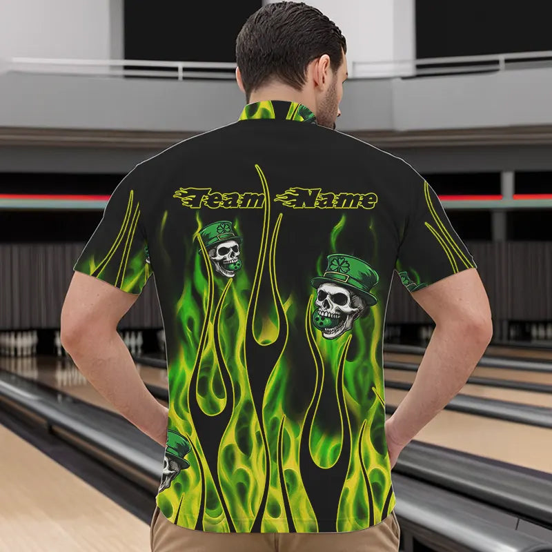 Green Flame clover skull St Patrick's Day Mens bowling shirts Custom Lucky Bowling Team Jerseys NQS9379