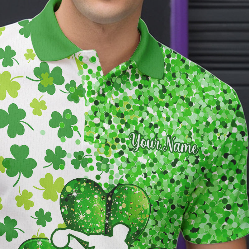 Green glitter shamrock clover Bowling shirts for Men custom St Patrick day Bowling Team Jerseys NQS9463