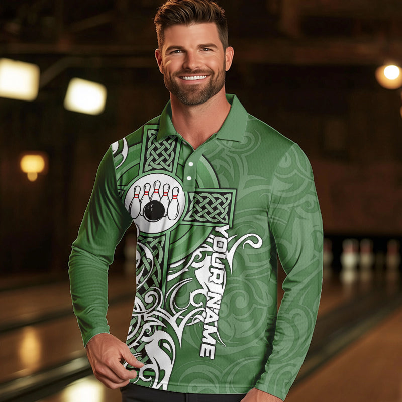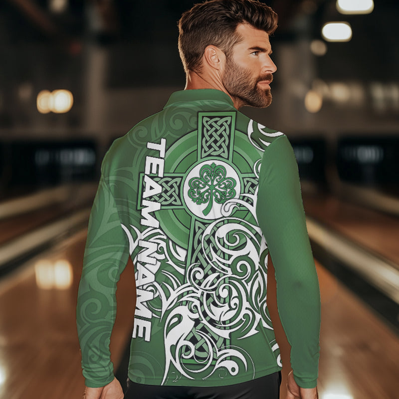 Green Irish Tribal Cross St Patrick's Day Mens bowling shirts Custom Lucky Bowling Team Jerseys NQS9382