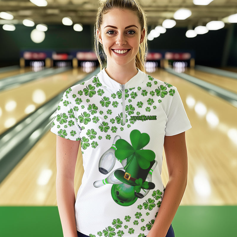 Green shamrock bowling shirts for Women Custom St Patrick Day white team league bowling jerseys NQS9400