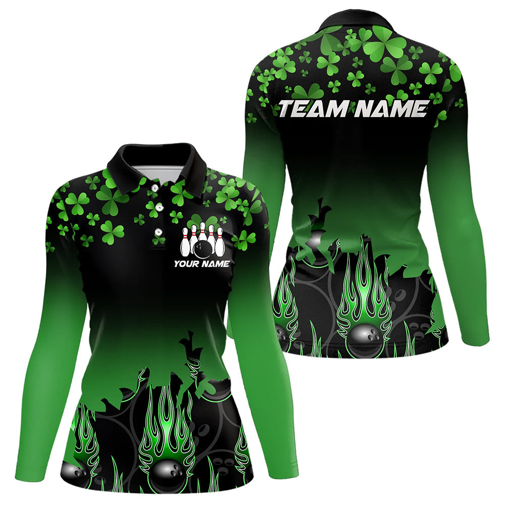 Green shamrock Flame bowling shirts for Women Custom St Patrick Day black team league bowling jerseys NQS9390