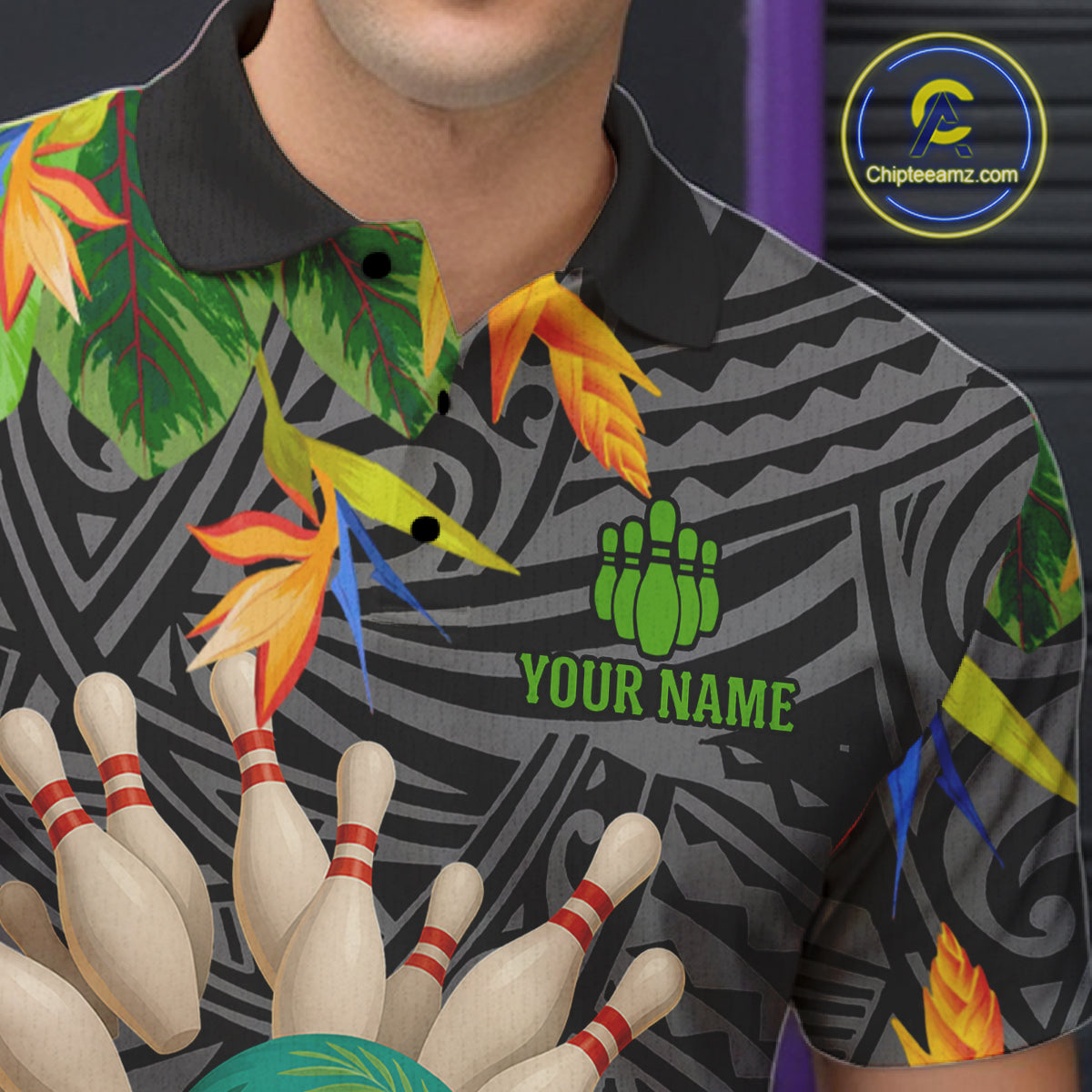 Green tropical flower tribal pattern Bowling Shirts For Men Custom Bowling Team Jersey Bowlers Outfit NQS11005