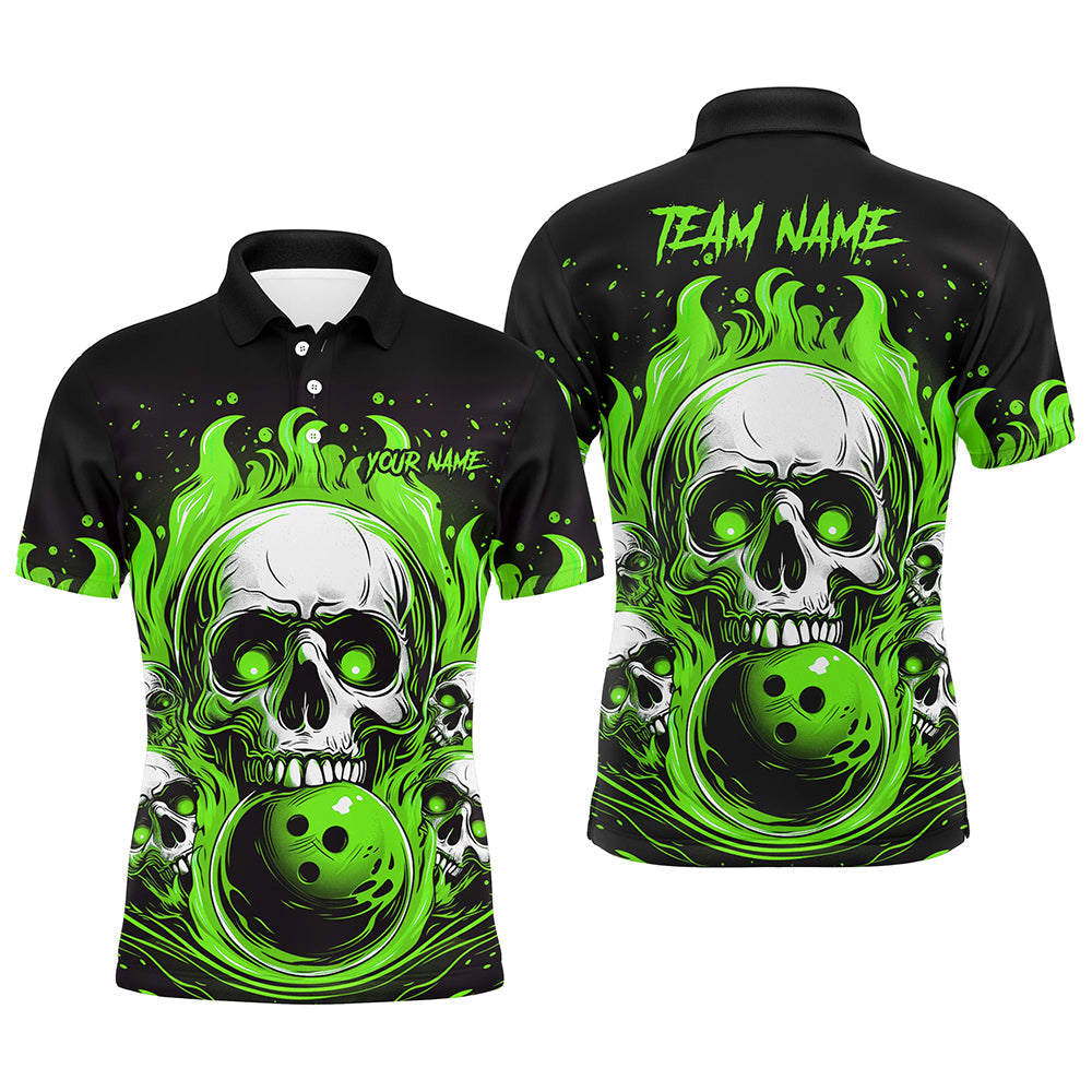 Custom Green Skull Bowling Team Shirts, Flame Bowling Jerseys Bowlers Shirts For Men And Women IPHW5842