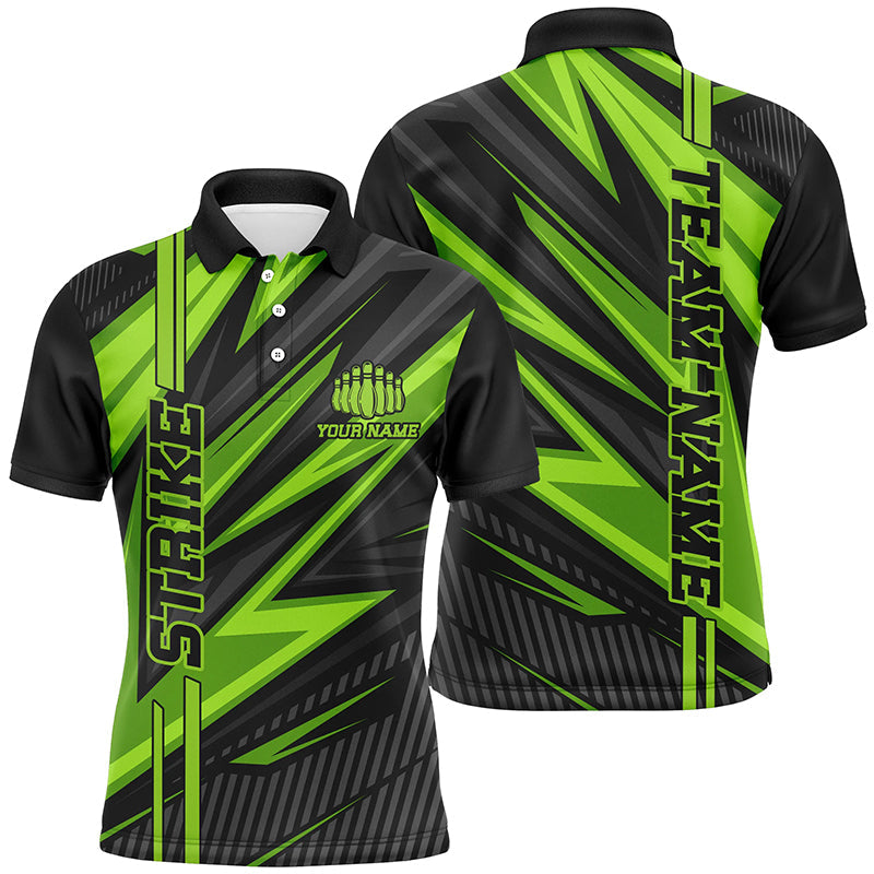 Custom Unisex Green Strike Bowling Polo / Quarter-Zip Shirts, Bowling Team Jerseys IPHW6016