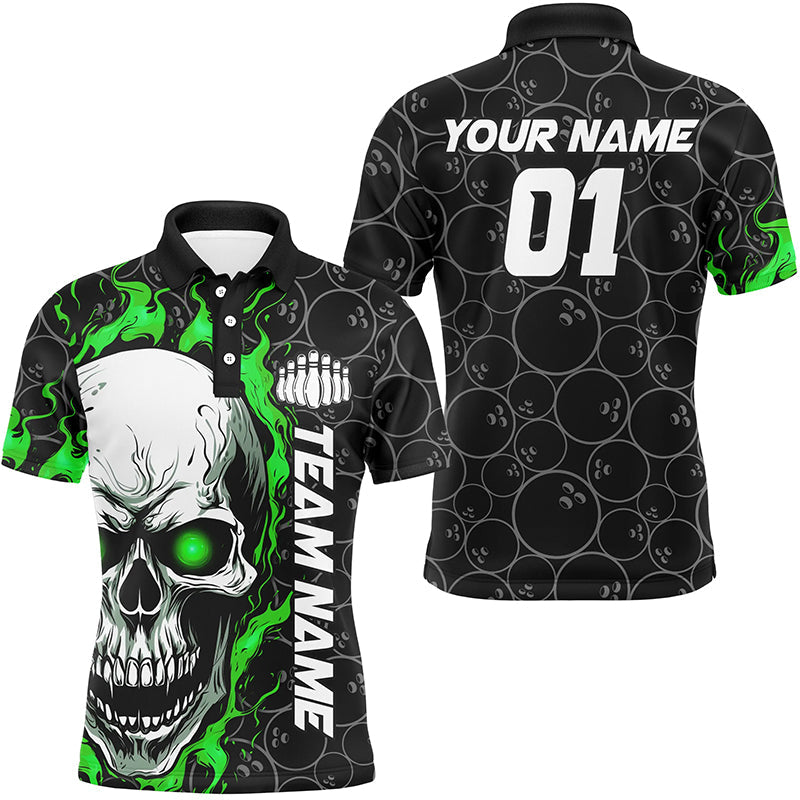 Custom Green Flame Skull Halloween Bowling Shirts For Men With Custom Name, Team Name, Number IPHW7102