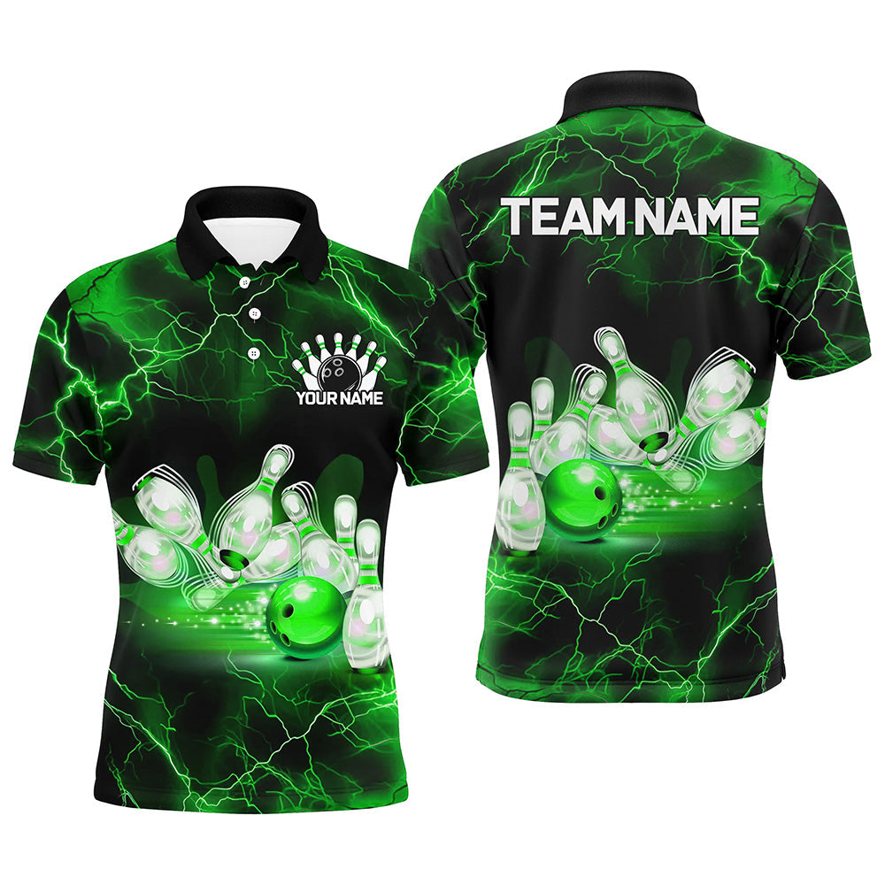 Green Thunder Lightning Custom Bowling Shirts For Men, Bowling League Shirts Bowling Jersey IPHW7333