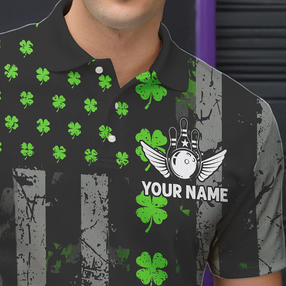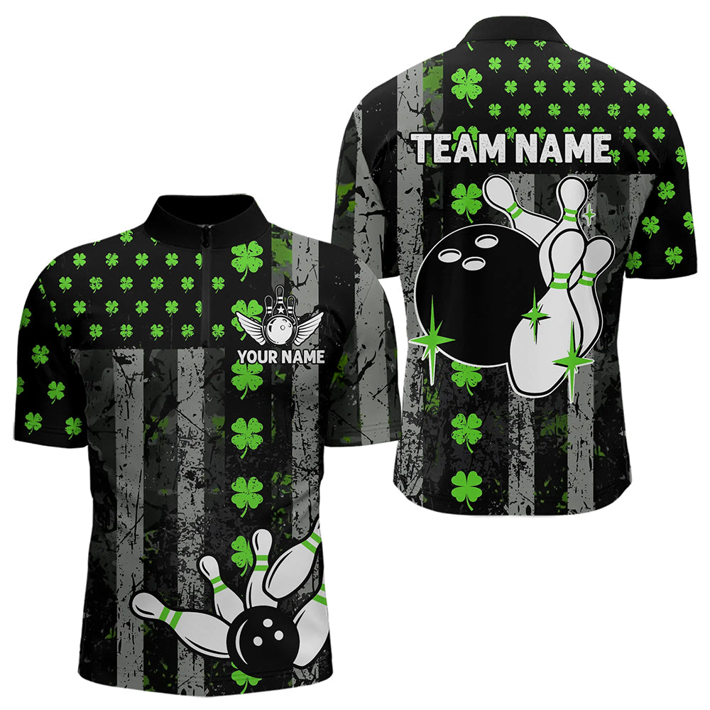 Green Shamrock Grunge US Flag Patriotic Bowling Shirts For Women Custom St Patrick Day Bowling Jersey TDM3545