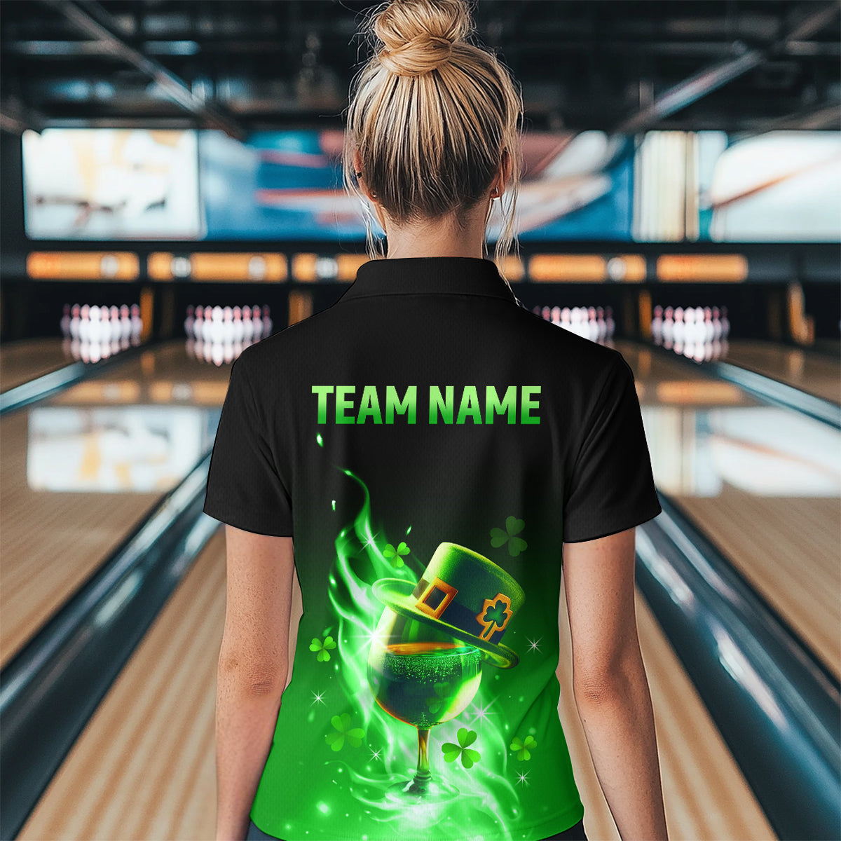 Custom Bowling Shirt Unisex Green Shamrock Lucky Clover Polo Bowling Jersey QZT624