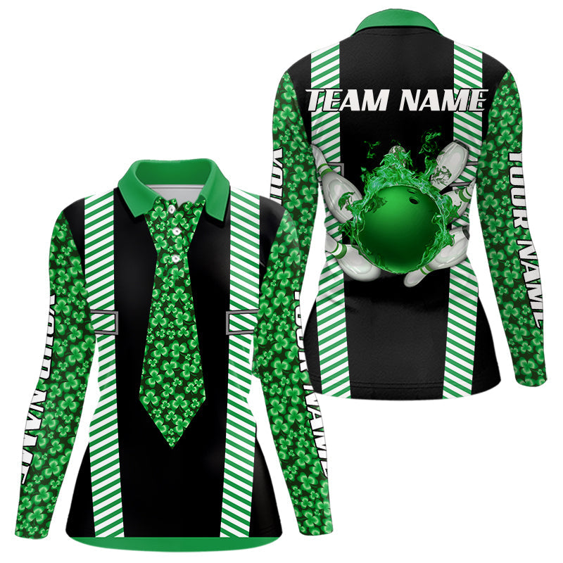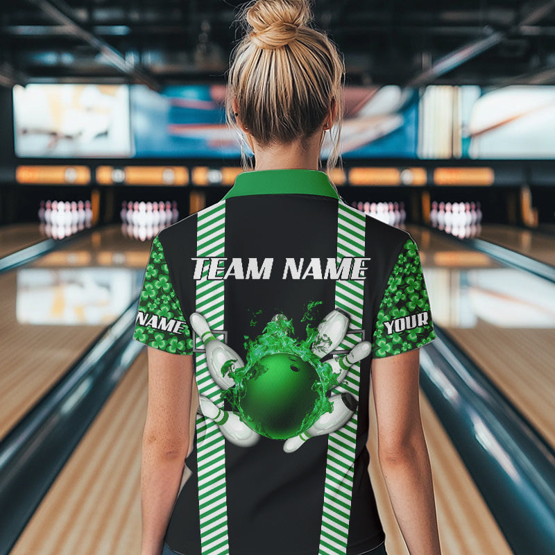 Personalized Green Shamrock pattern Bowling shirts for Women custom St Patrick Day Bowling Team Jersey NQS9548