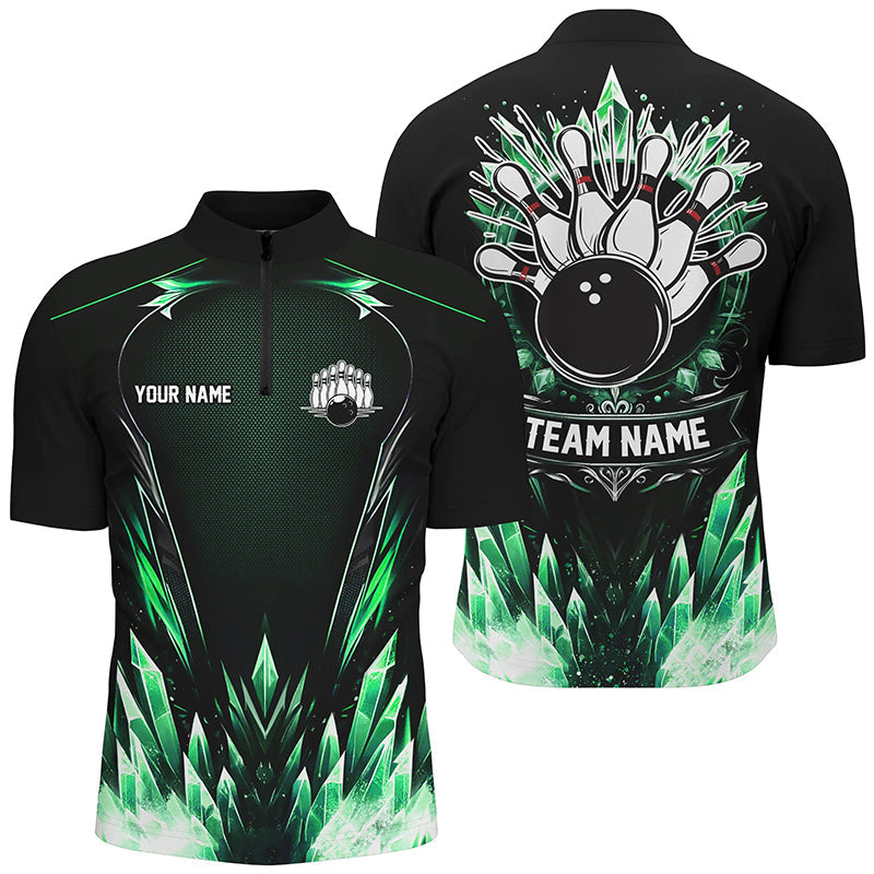 Personalized Icy Green Ice Bowling Team Shirts For Men Custom black Bowling Gifts for bowlers NQS8951