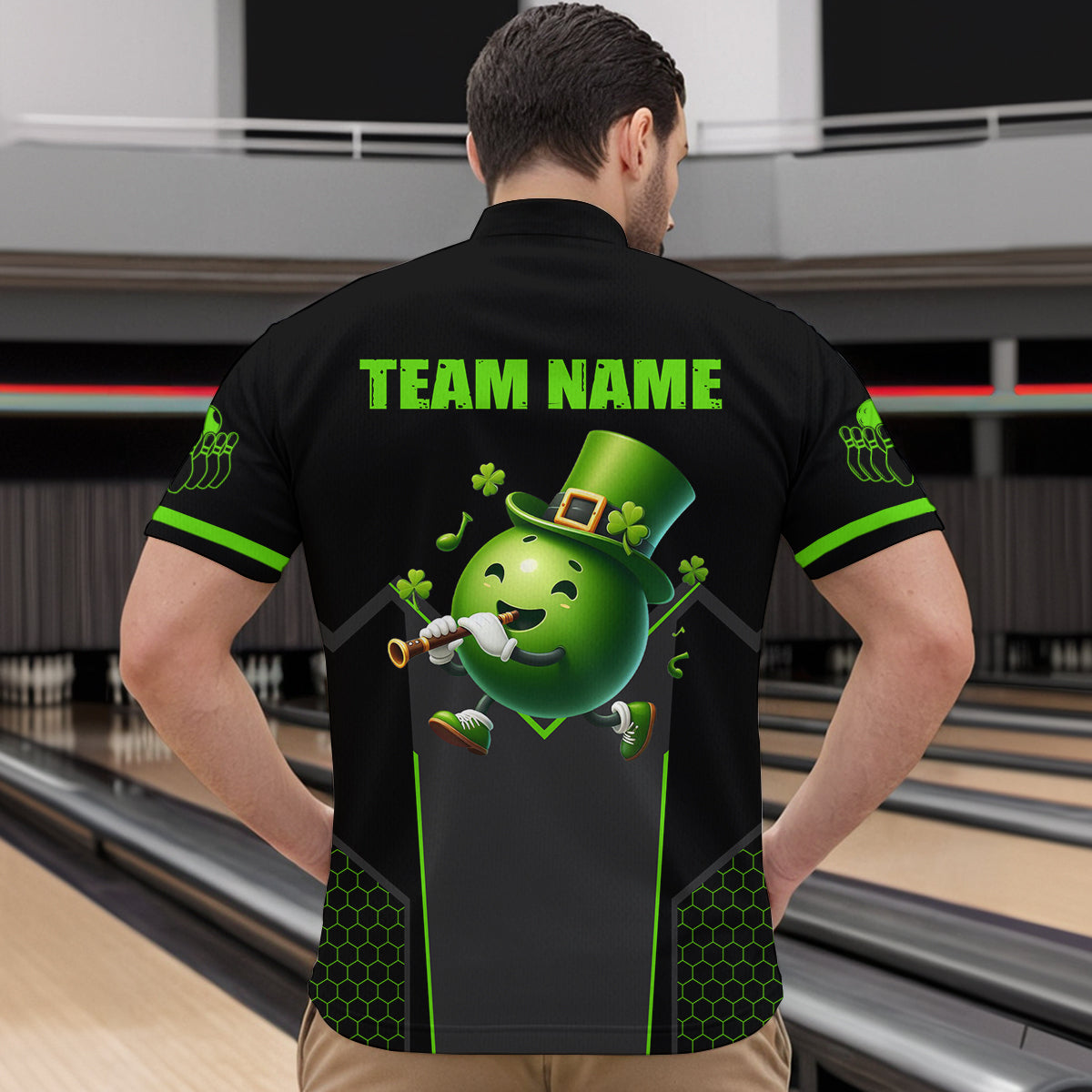 Personalized St Patrick Day Bowling Shirt Quarter-Zip Green Bowling Jersey Team League QZT621