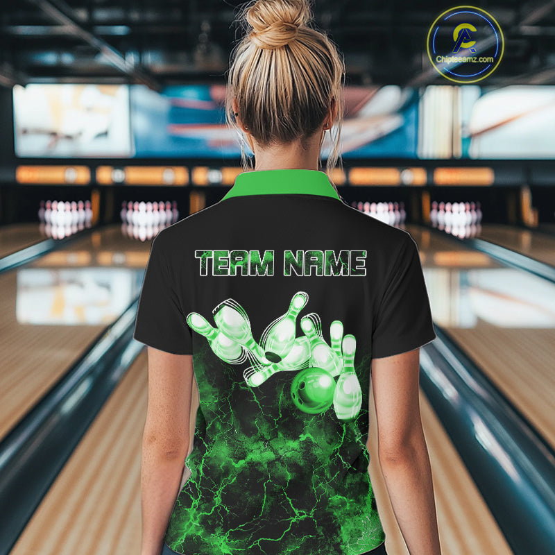Personalized Women's bowling shirts Green lightning Bowling Ball Pins bowling jerseys for Bowler NQS10635
