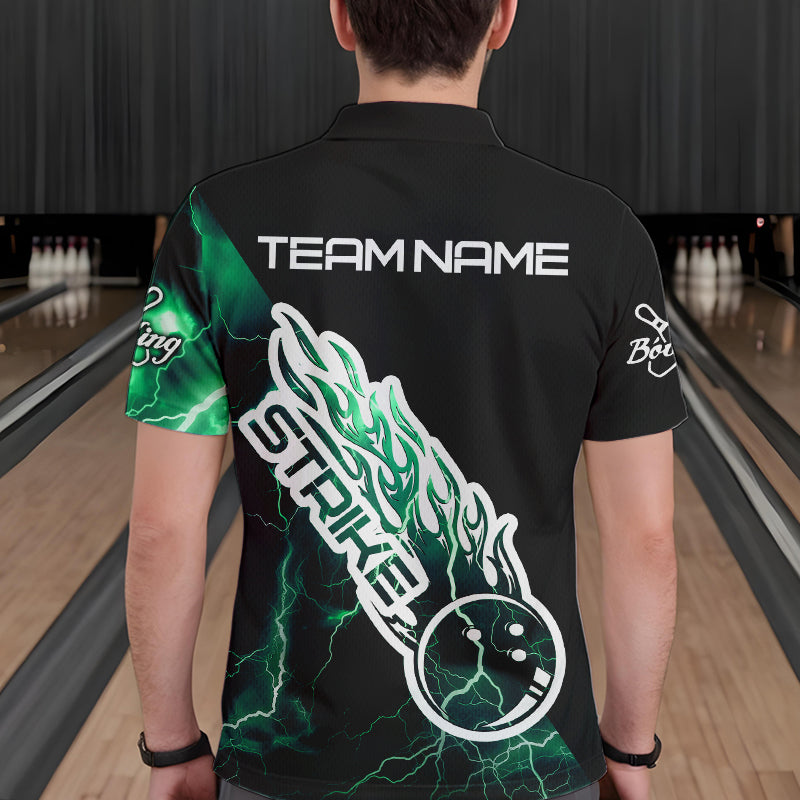 Custom Black And Green Thunder Lightning Strike Bowling Polo Shirts For Men Team Shirt IPHW8534