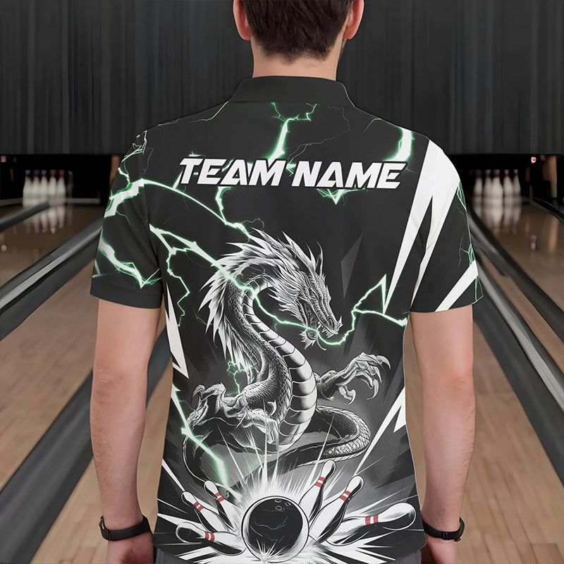 Custom Black And Green Thunder Lightning Dragon Bowling Team Polo Shirts For Men IPHW8555