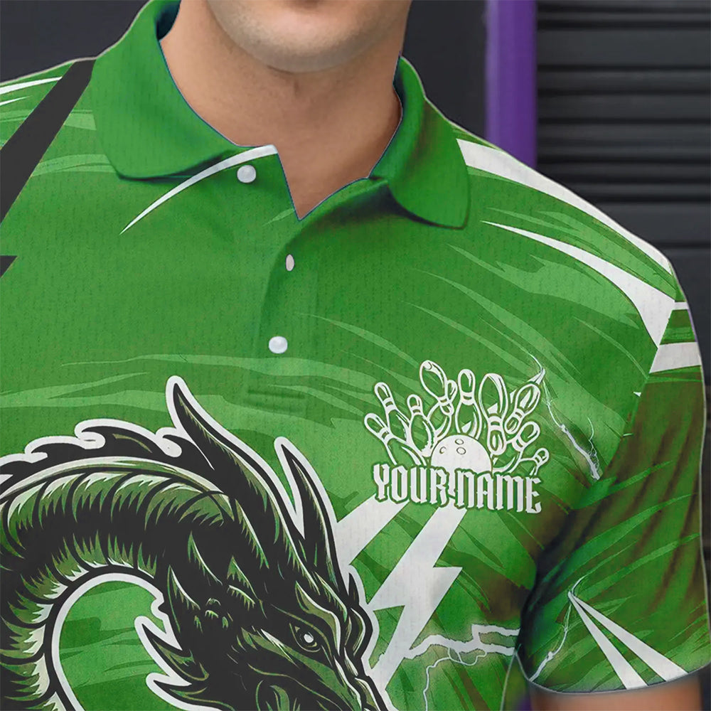 Custom Black And Green Thunder Lightning Dragon Bowling Jerseys Bowling Polo Shirts For Men IPHW8660