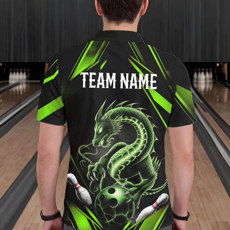 Custom Black And Green Dragon Bowling Polo Shirts For Men, Dragon Bowling League Shirt IPHW8674
