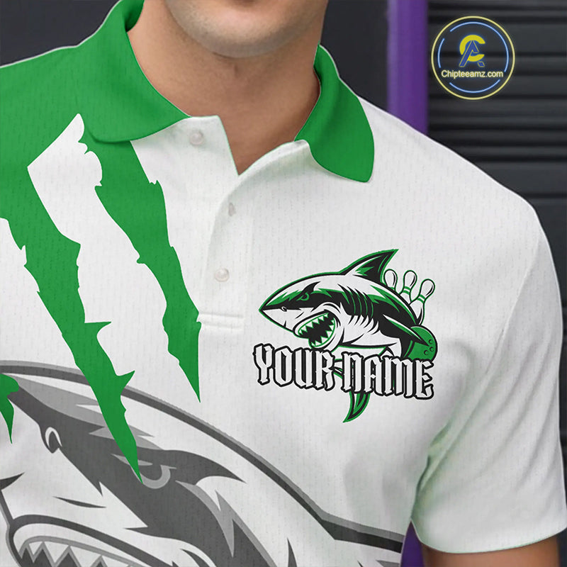 Custom White And Green Shark Jerseys, Shark Bowling Team Men Polo Shirts Bowlers Outfit IPHW8989