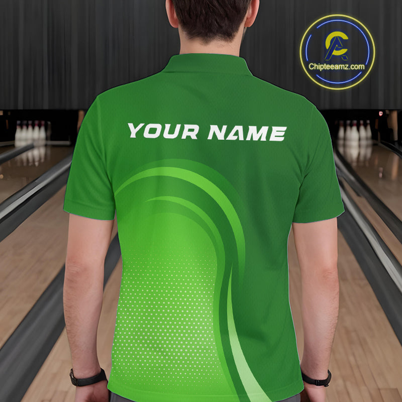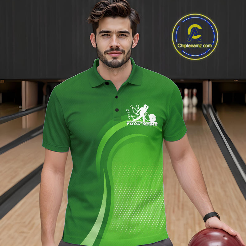 Custom Green Bowling Team Polo Shirts For Men, Bowling Tournament Bowling League Shirt IPHW9238
