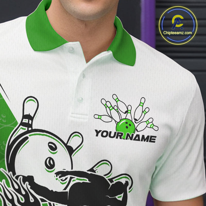 Cusom Green Strike Bowling Team Polo Shirts For Men, Bowling League Shirt Bowlers Outfit IPHW9261