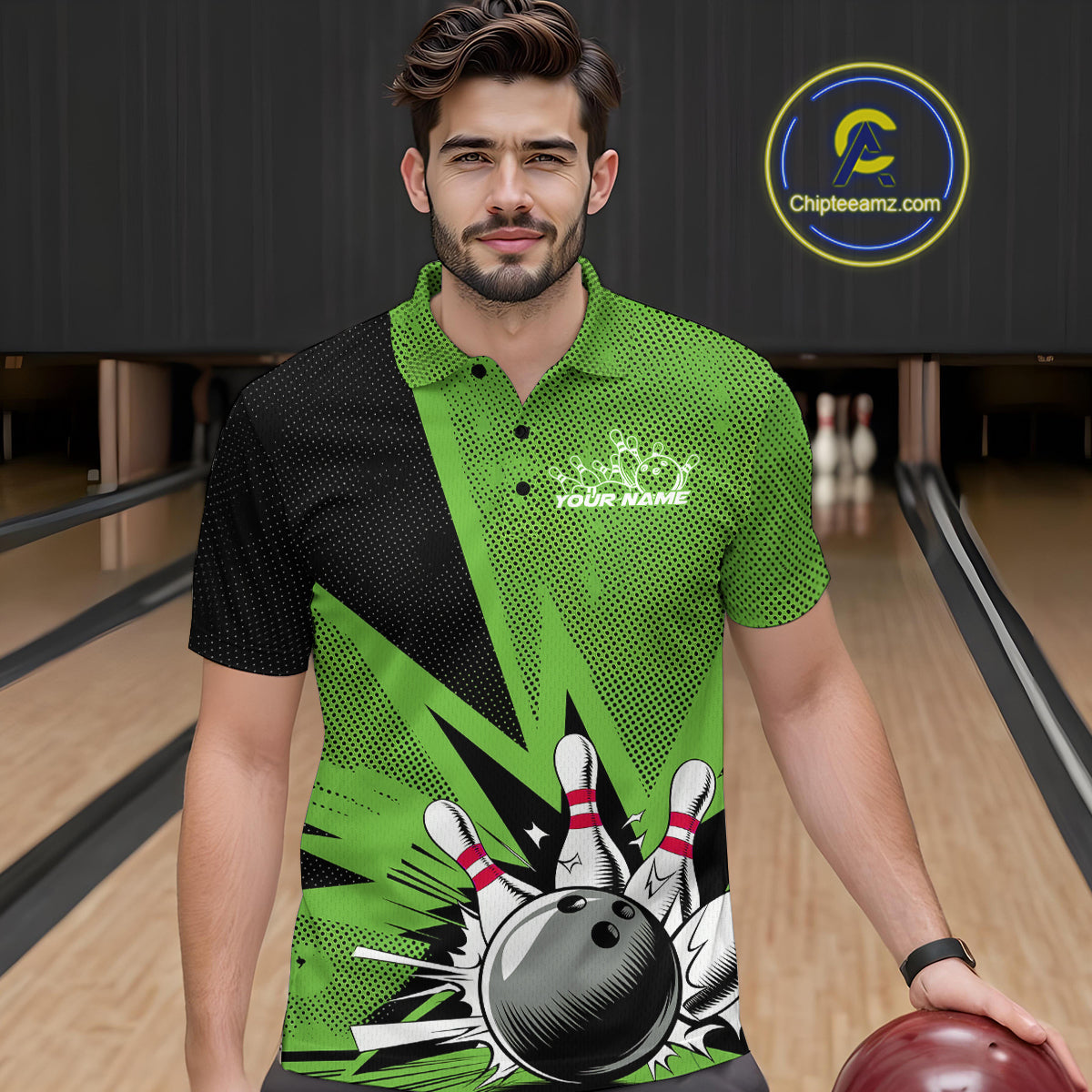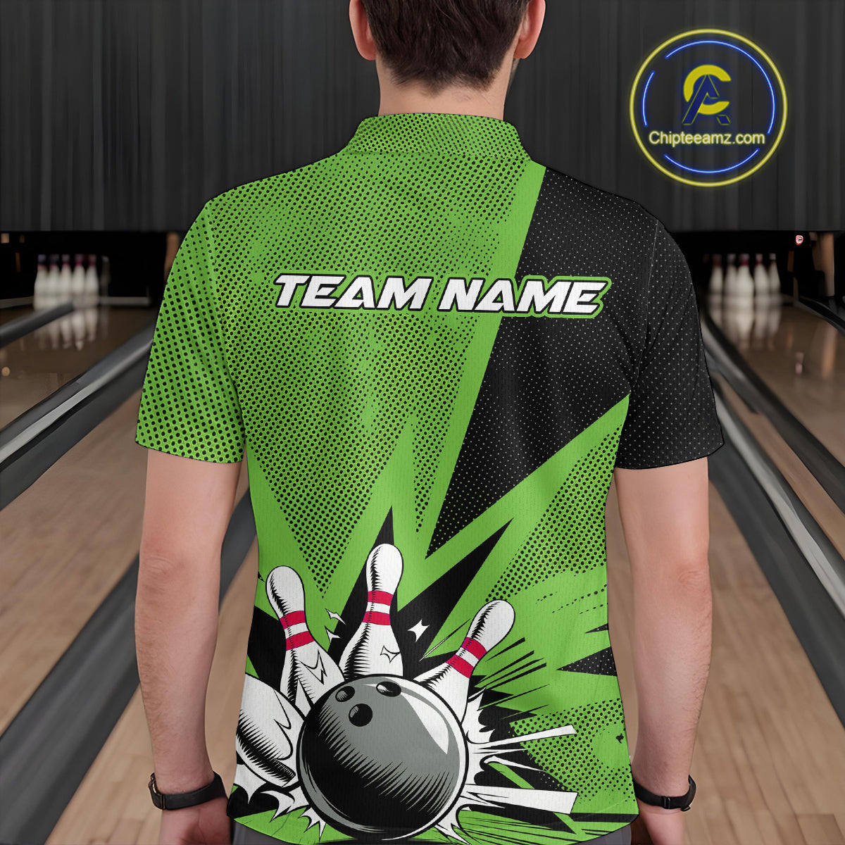 Custom Green Bowling Jerseys, Bowling Team Men Polo Shirts Bowling League Shirt IPHW9392