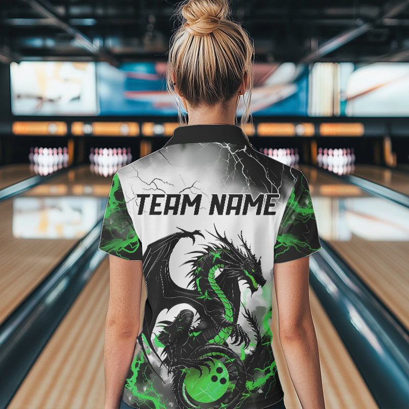 Black And Green Thunder Lightning Custom Dragon Bowling Women Polo Shirts, Bowling Uniform IPHW8696
