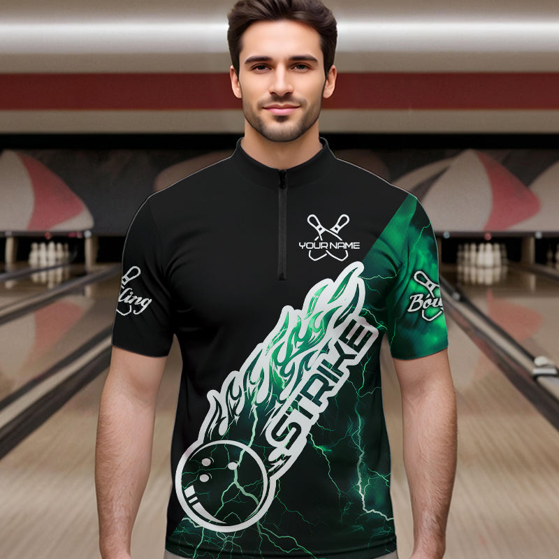 Custom Black And Green Thunder Lightning Strike Bowling Quarter-Zip Shirts For Men Team Shirt IPHW8534