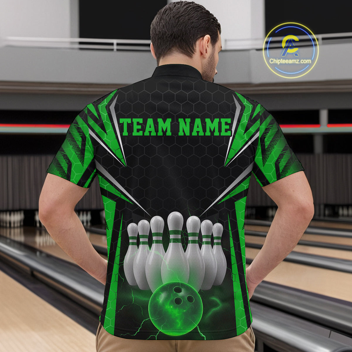 Custom Black And Green Bowling Team Jerseys, Bowler Uniform Bowling Quarter-Zip Shirts For Men IPHW9285
