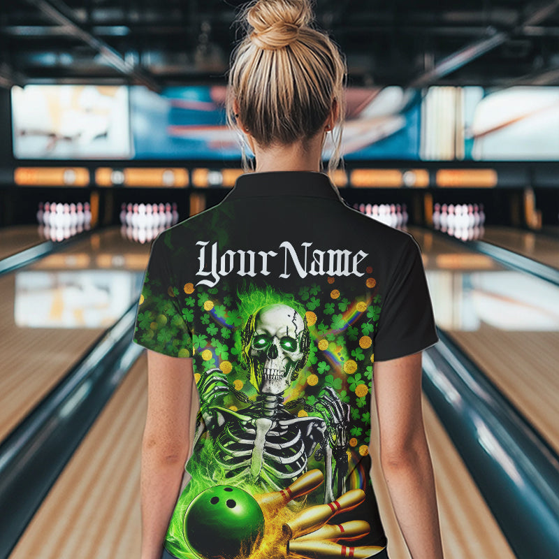 Custom Green Skull Saint Patrick Day Womens Bowling Quarter-Zip Shirt, Shamrock Bowling IPHW8378