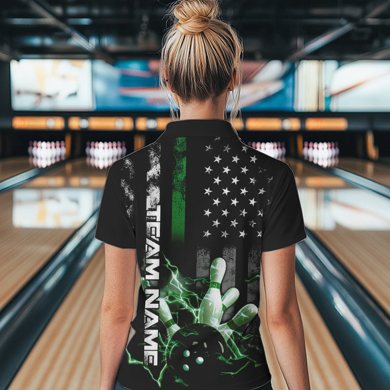 Custom Black And Green Thin Line American Flag US Bowling Team Womens Quarter-Zip Shirts IPHW8519