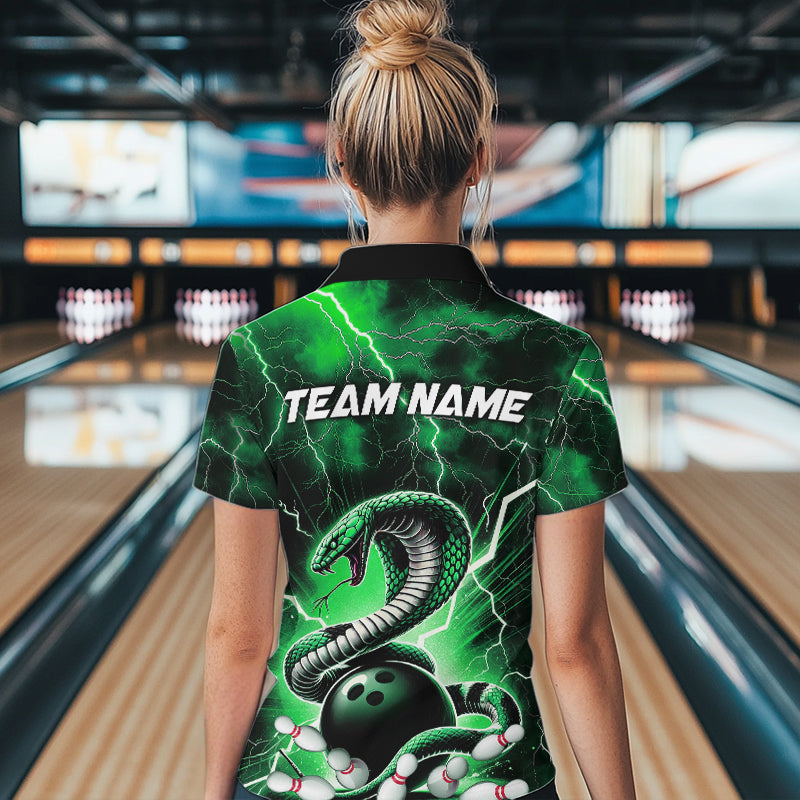 Green Thunder Lightning Custom Cobra Snake Bowling Women Quarter-Zip Shirts Team Uniform IPHW8896