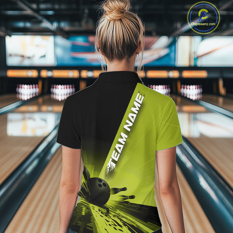 Custom Black And Green Strike Bowling Quarter-Zip Shirts For Women, Bowling Team Uniform IPHW9553