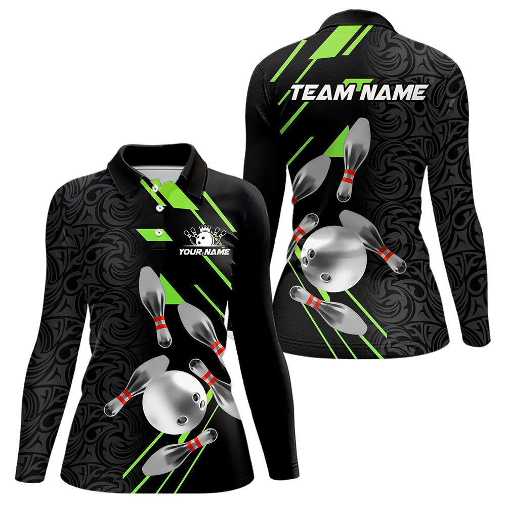 Silver Bowling Ball pins Team bowling shirts for women custom bowling Polo, Quarter zip jersey | Green NQS9628