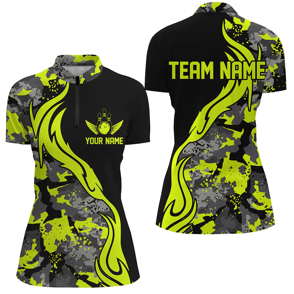 Green Camo Custom Bowling Team Shirts Personalized Bowling League Shirts For Women IPHW5516