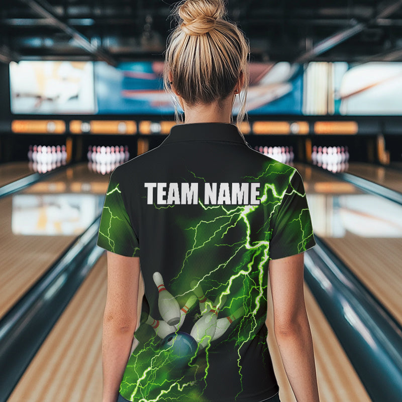 Women bowling polo shirts Custom green lightning thunder Bowling Team Jersey, gift for team Bowlers NQS6146